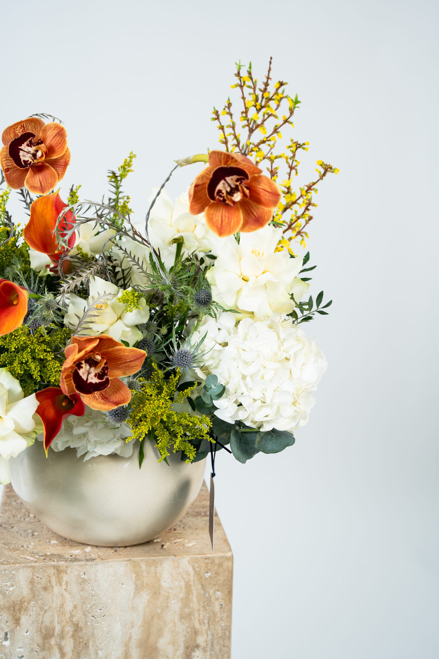 - Seasonal flower substitutions may occur, with alternatives chosen to match the original color scheme and style.
