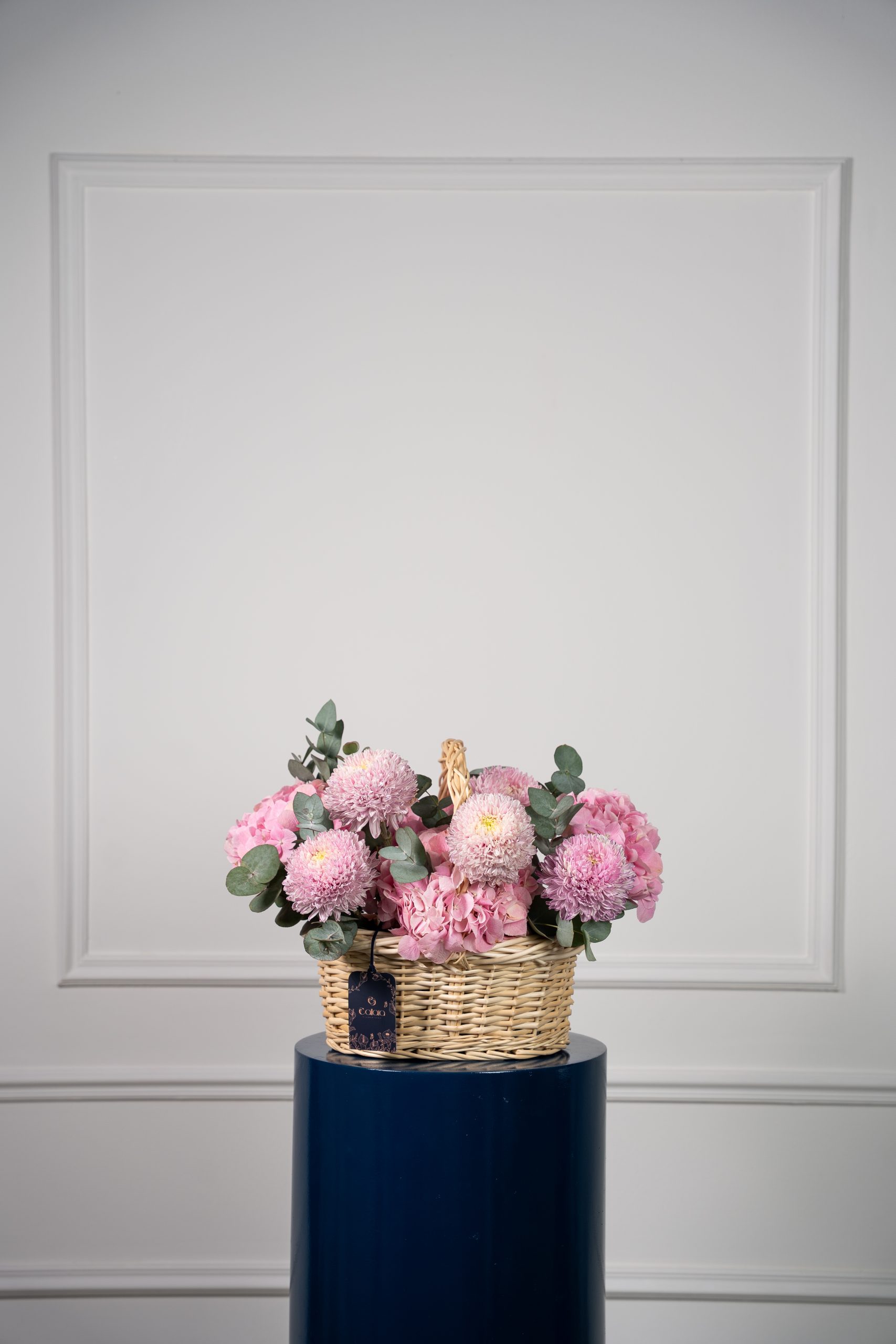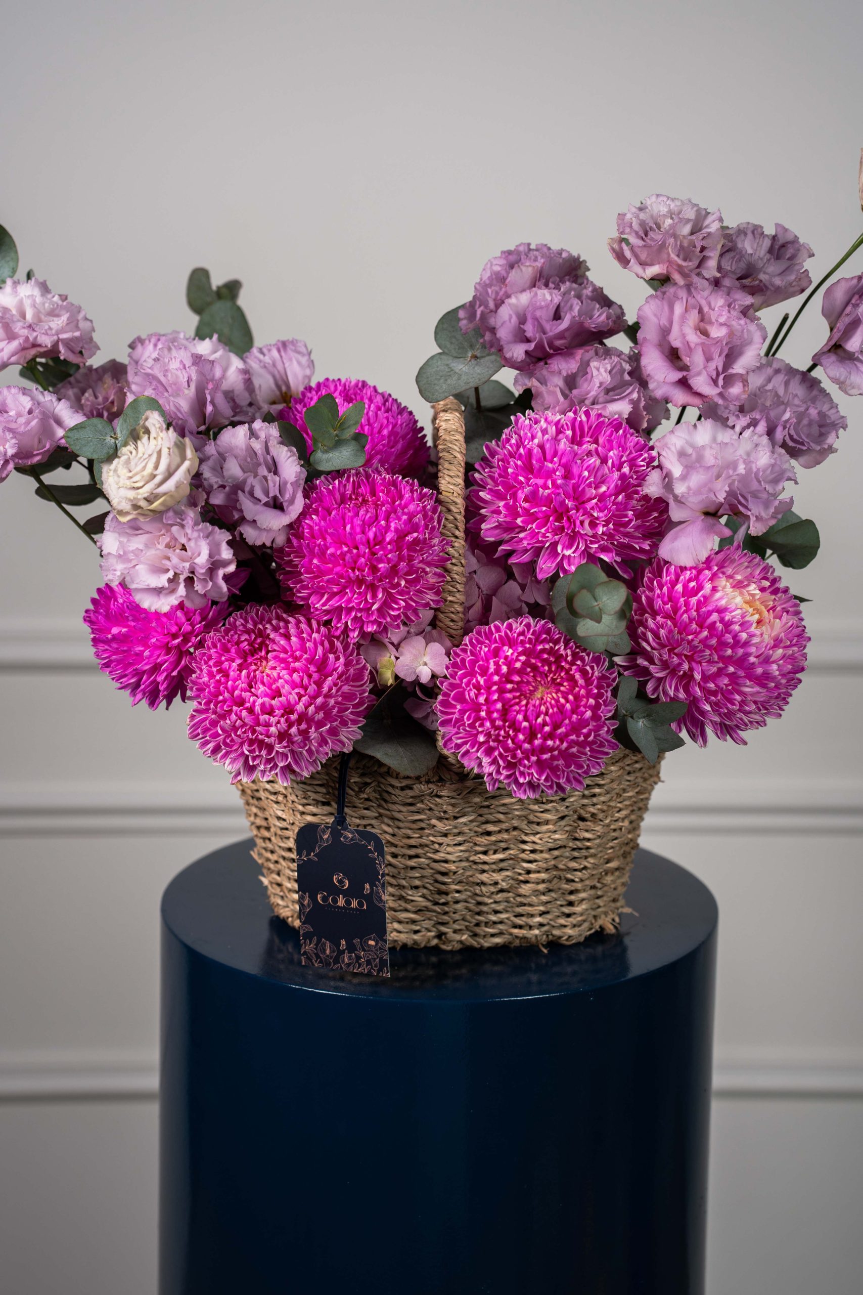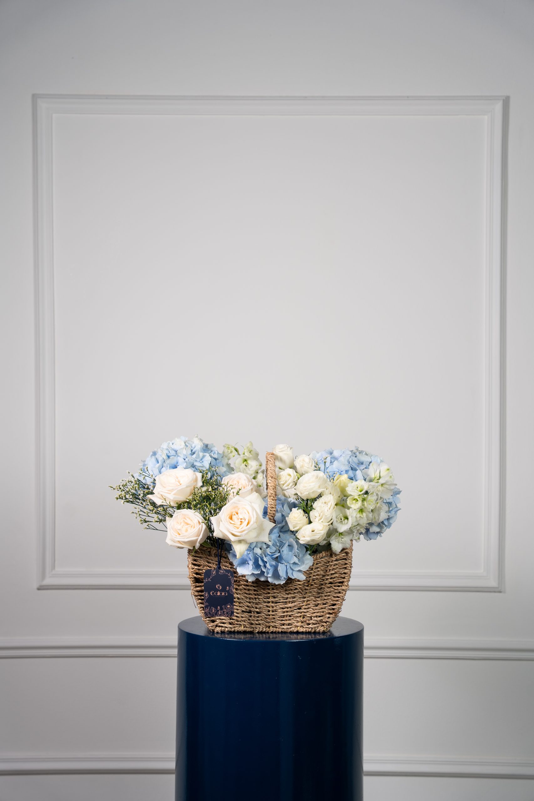 Azaiya is a graceful harmony of soft pastels and fresh elegance. Designed with Ohara pink roses, sky-blue delphinium, tanacetum daisies, spray matthiola, hydrangea, and eucalyptus, this bouquet balances romance and serenity in every bloom. Wrapped in Callaia’s signature style, it is a refined gift for life’s most special moments.