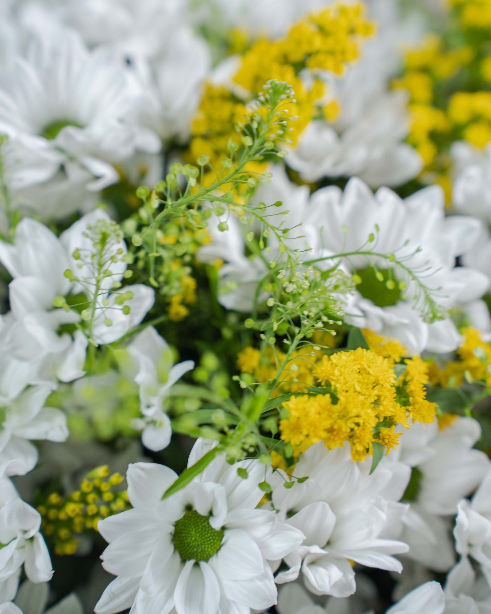Bright Days is a joyful expression of warmth, optimism, and natural beauty. This elegant bouquet features a lush collection of crisp white flowers, symbolizing purity and grace, thoughtfully accented with vibrant yellow blooms that evoke happiness, positivity, and sunshine-filled moments.
