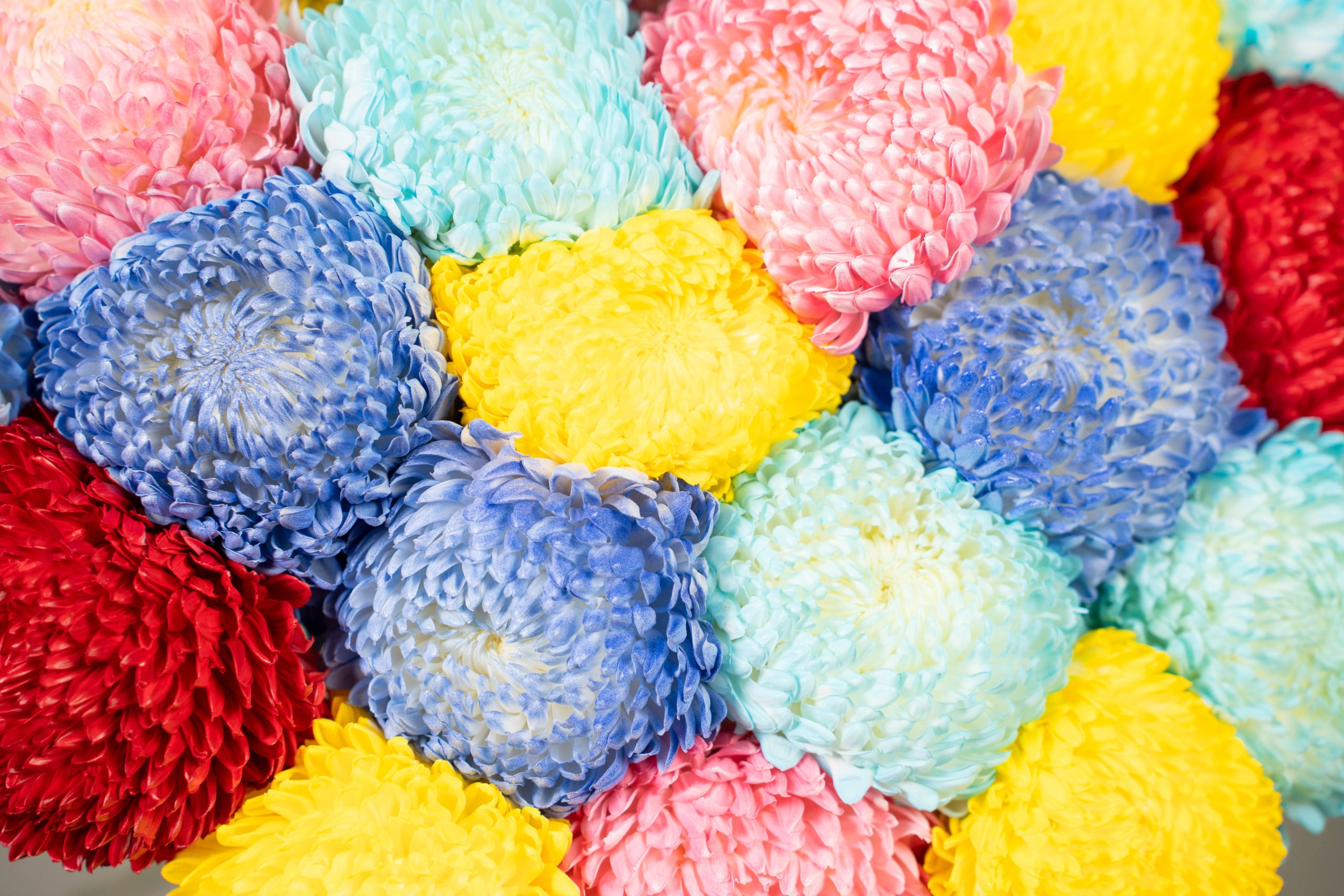 Rainbow Buttons is a lively celebration of color, happiness, and expressive floral design. This cheerful arrangement showcases button chrysanthemums in a vibrant mix of bright hues, including yellow, blue, pink, red, and soft pastel tones. Each bloom adds texture and charm, coming together to create a bouquet that feels energetic, uplifting, and full of life.