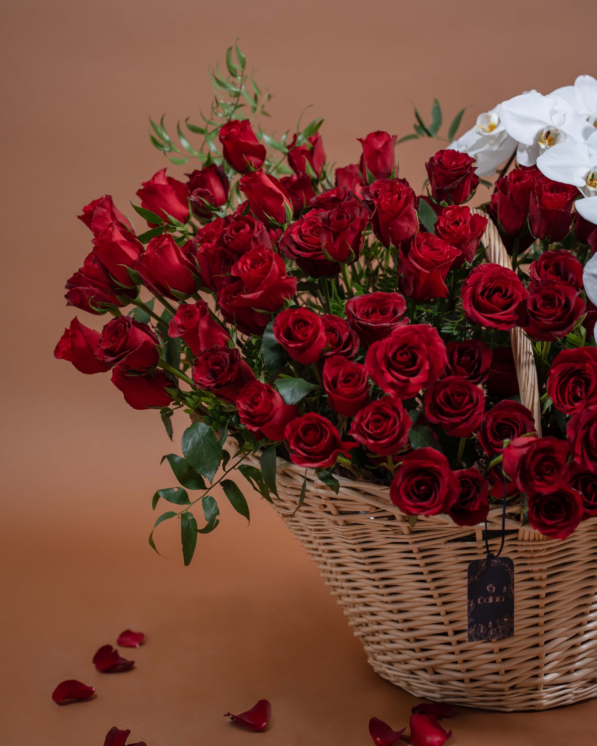 Red Love Perfection is a breathtaking expression of classic romance and refined elegance. This stunning arrangement features an abundant collection of premium red roses, expertly arranged in a handcrafted woven basket to create a full, rich, and visually striking presentation.