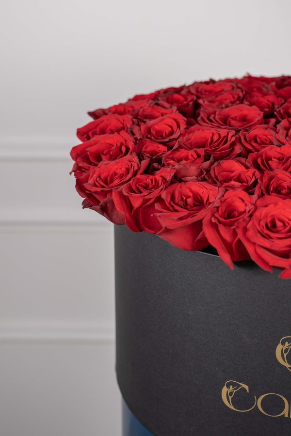 Red Rose Delight Box is a timeless and luxurious arrangement of velvety red roses, elegantly styled in a signature black hat box for a bold and romantic statement.