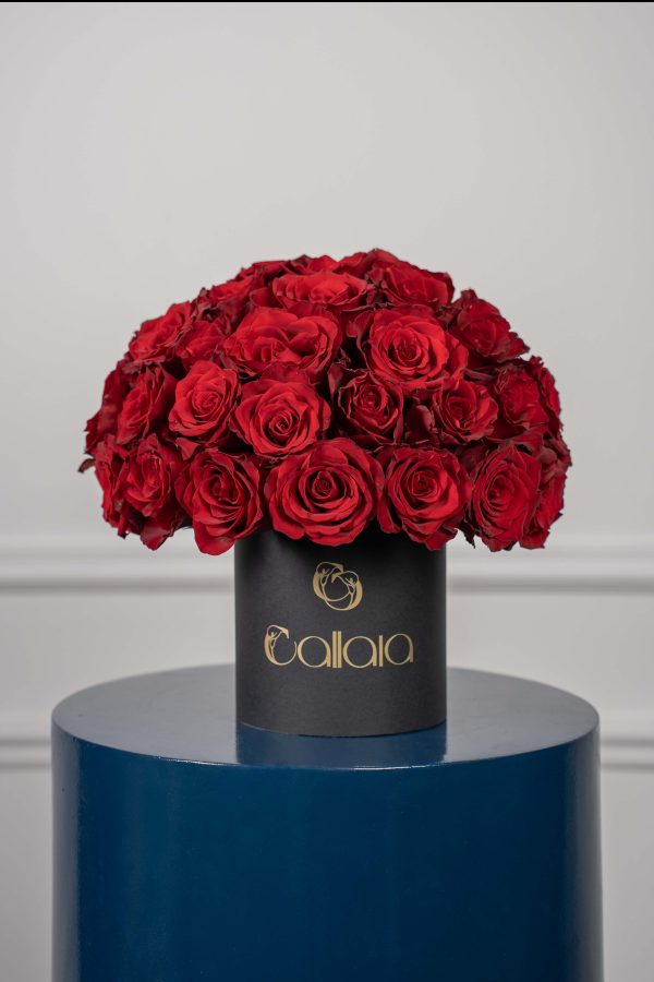 Presented in an elegant signature box, this arrangement is designed to make a powerful statement—perfect for anniversaries, romantic gestures, Valentine’s Day, proposals, or any occasion where words are not enough. The deep red tones symbolize passion and devotion, while the structured design adds a modern, upscale touch.