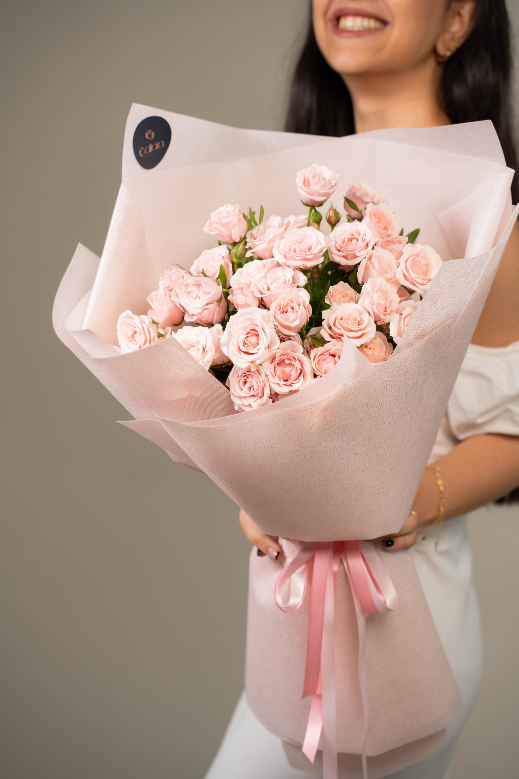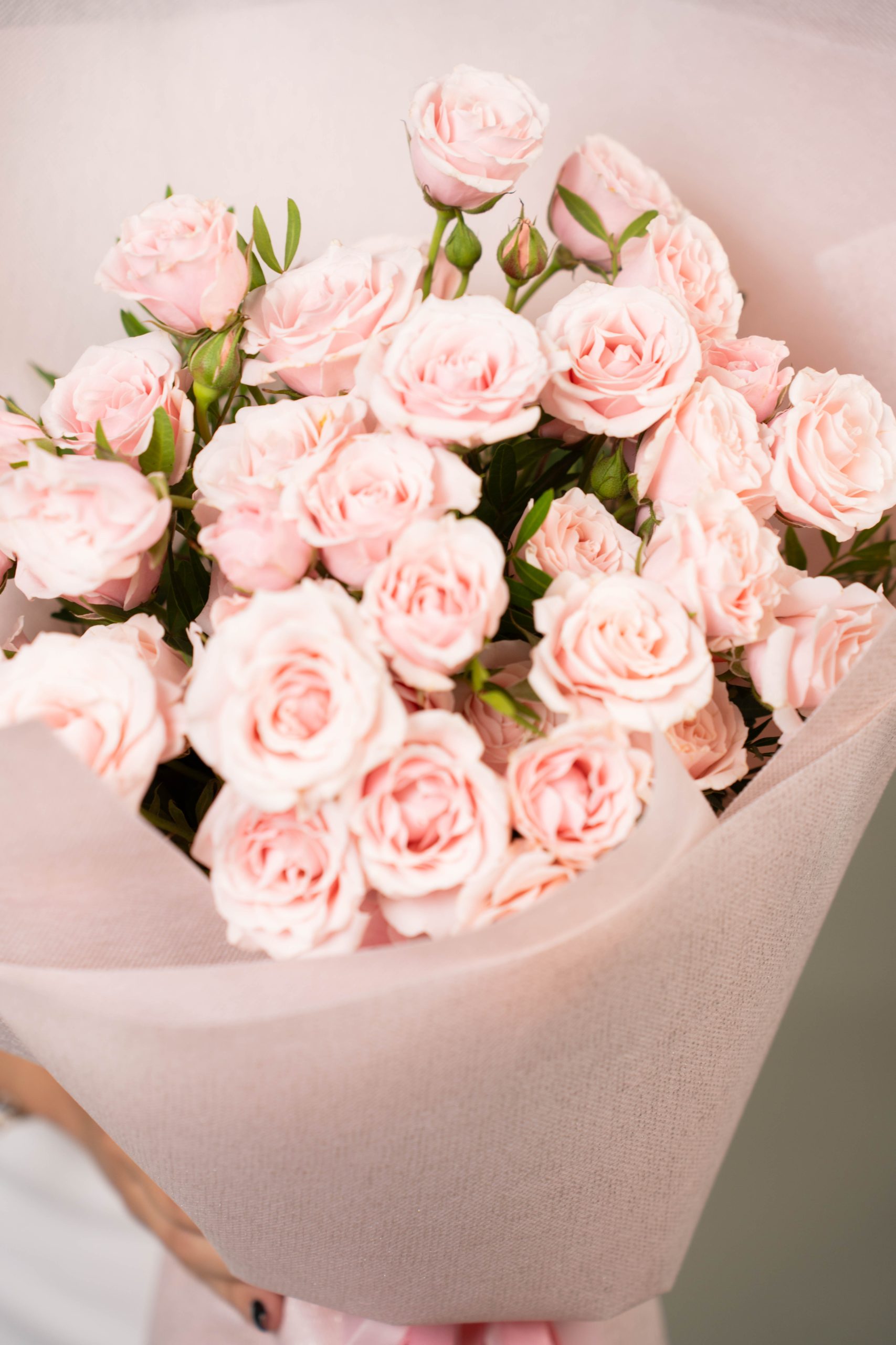 Spray Rose Majolika is a soft and romantic bouquet of light pink spray roses, wrapped in blush-toned paper for a gentle and graceful floral gift.