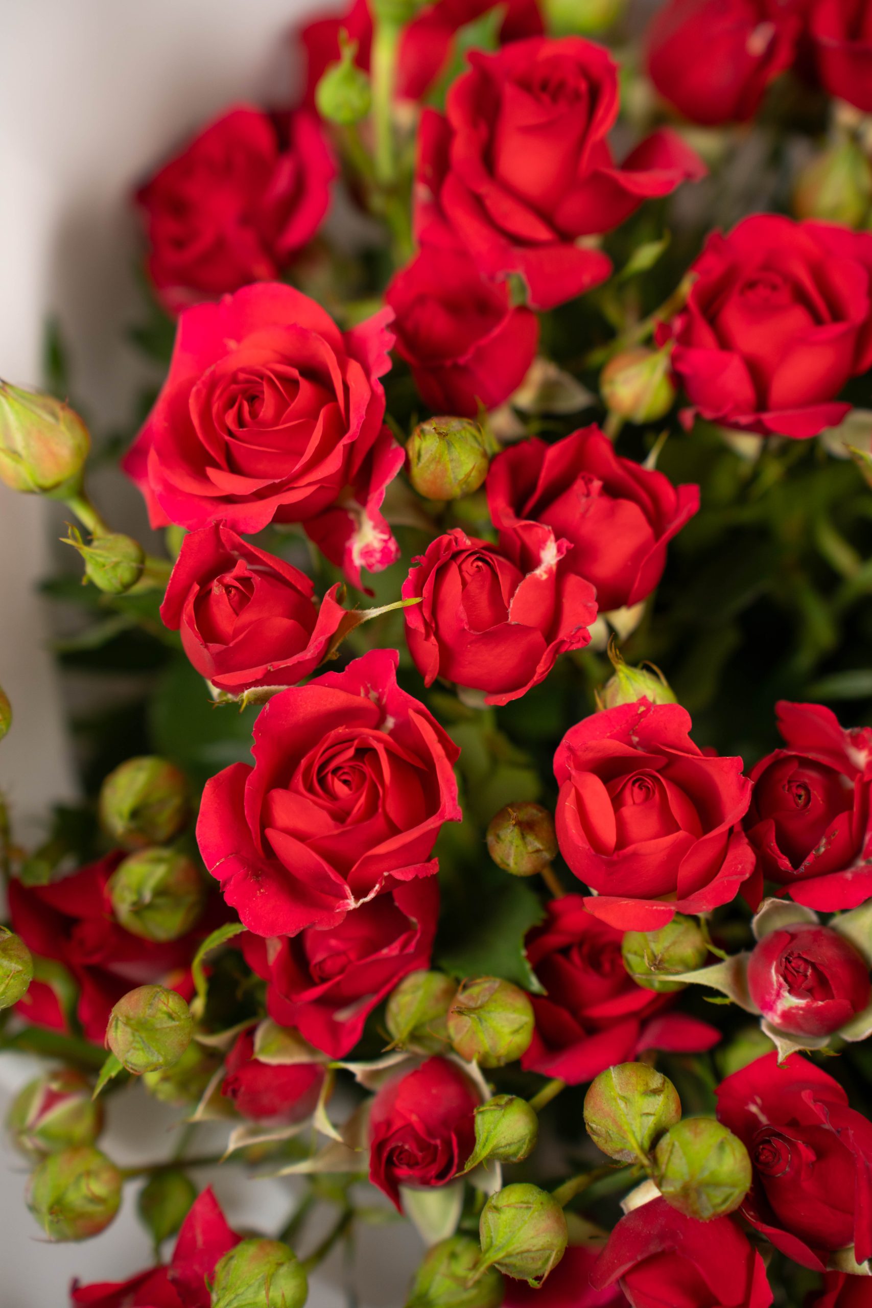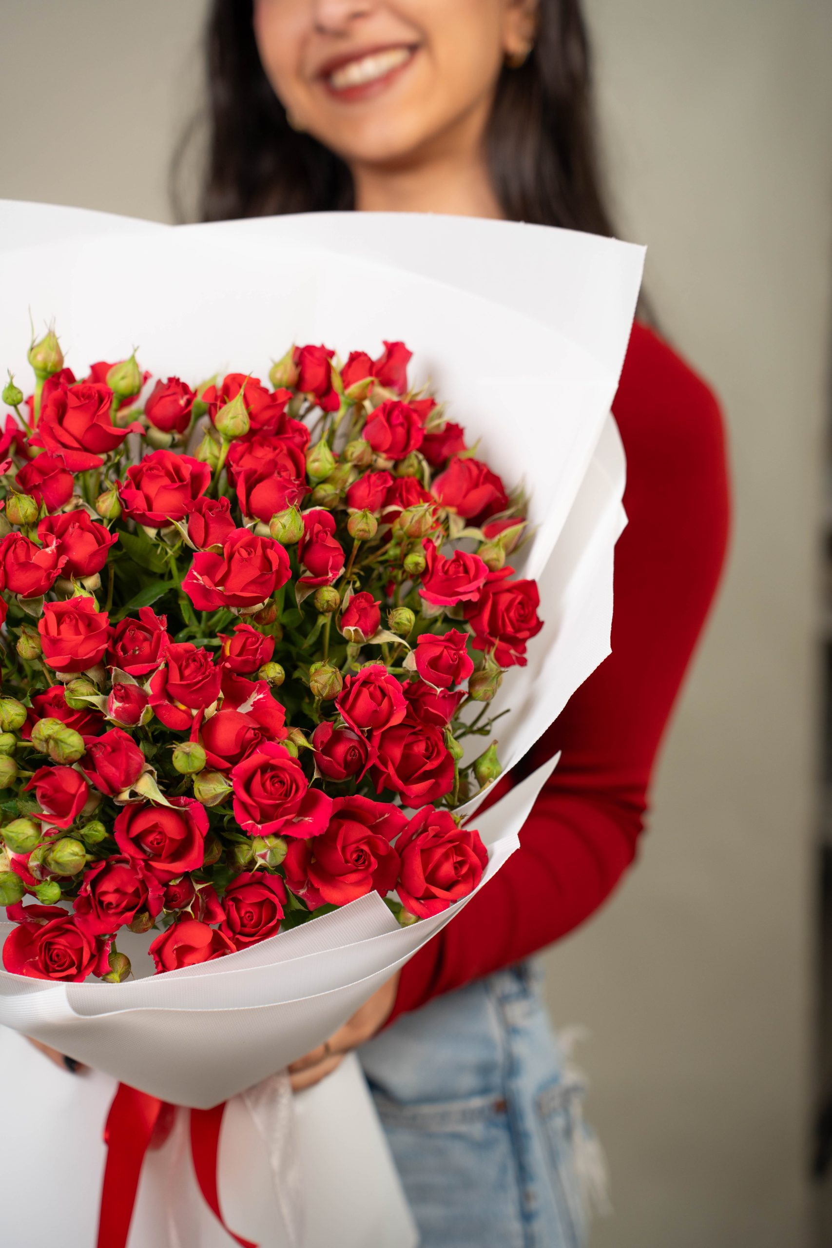 Spray Rose Red is a romantic bouquet of red spray roses, wrapped in white paper for a classic and heartfelt floral gift.