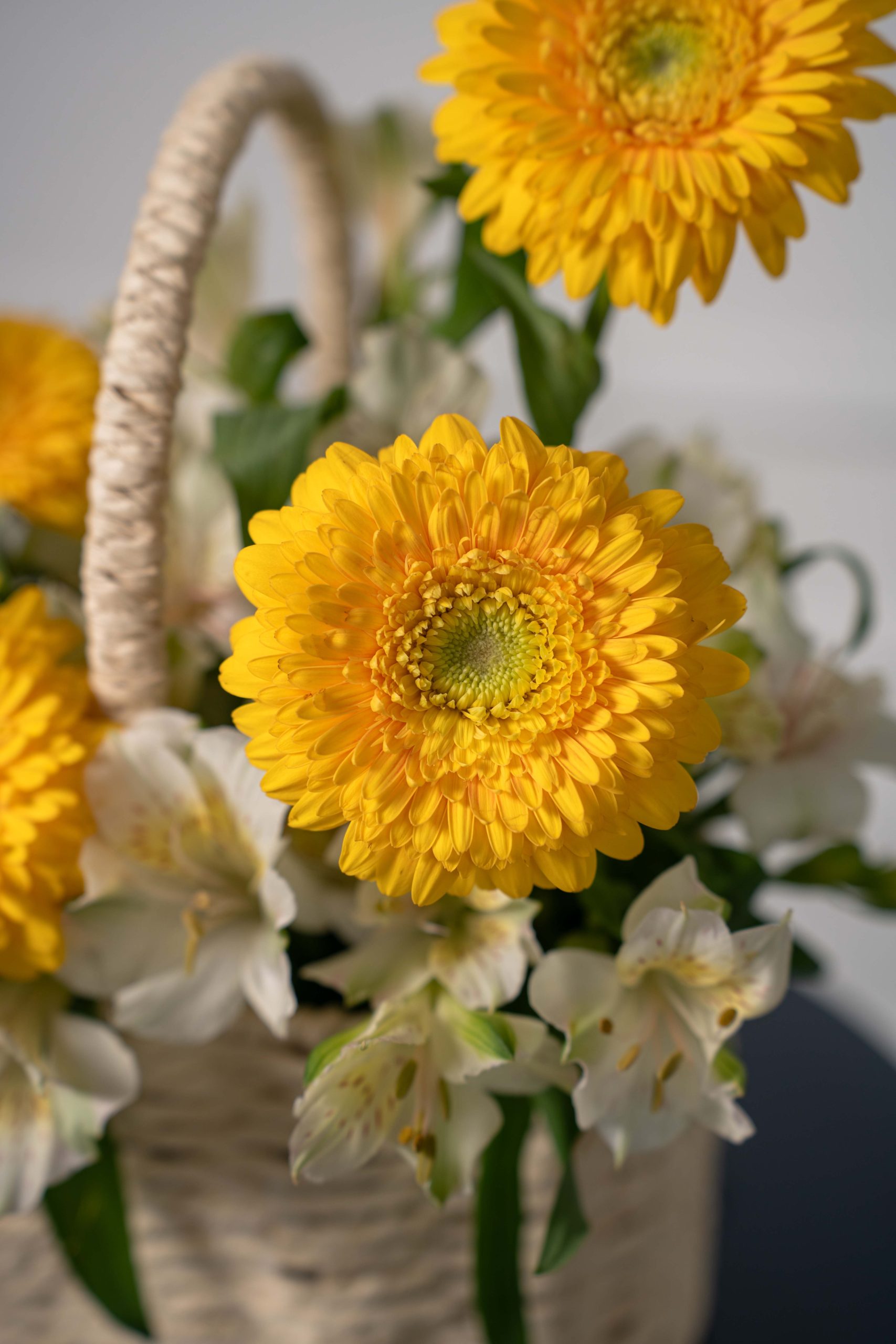 Bright and cheerful, Sunny Daisy Basket is a radiant mix of golden yellow germini daisies paired with soft white alstroemeria. Arranged in a woven basket, it’s a simple yet elegant gift that brings warmth and positivity to any space.