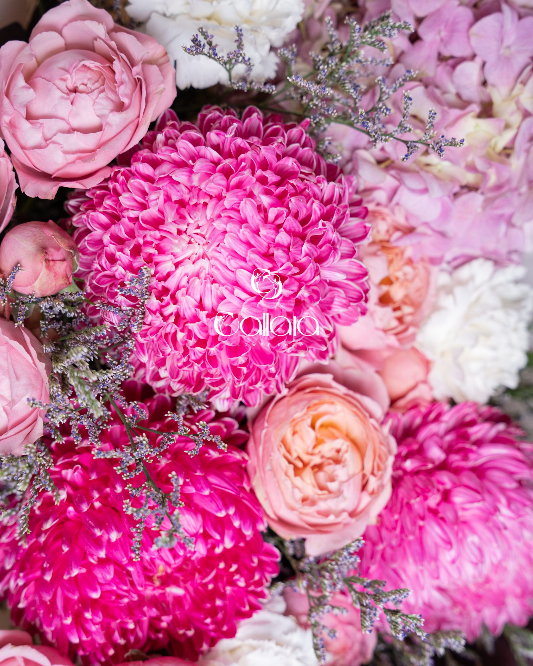 Sweet Pink is a celebration of tenderness, femininity, and timeless elegance. This beautifully composed bouquet brings together soft pink hydrangea as its foundation, creating a full and cloud-like base that evokes romance and serenity. Delicate blush and pink roses add classic charm and emotional depth, while vibrant pink chrysanthemum blooms introduce texture, volume, and visual richness.