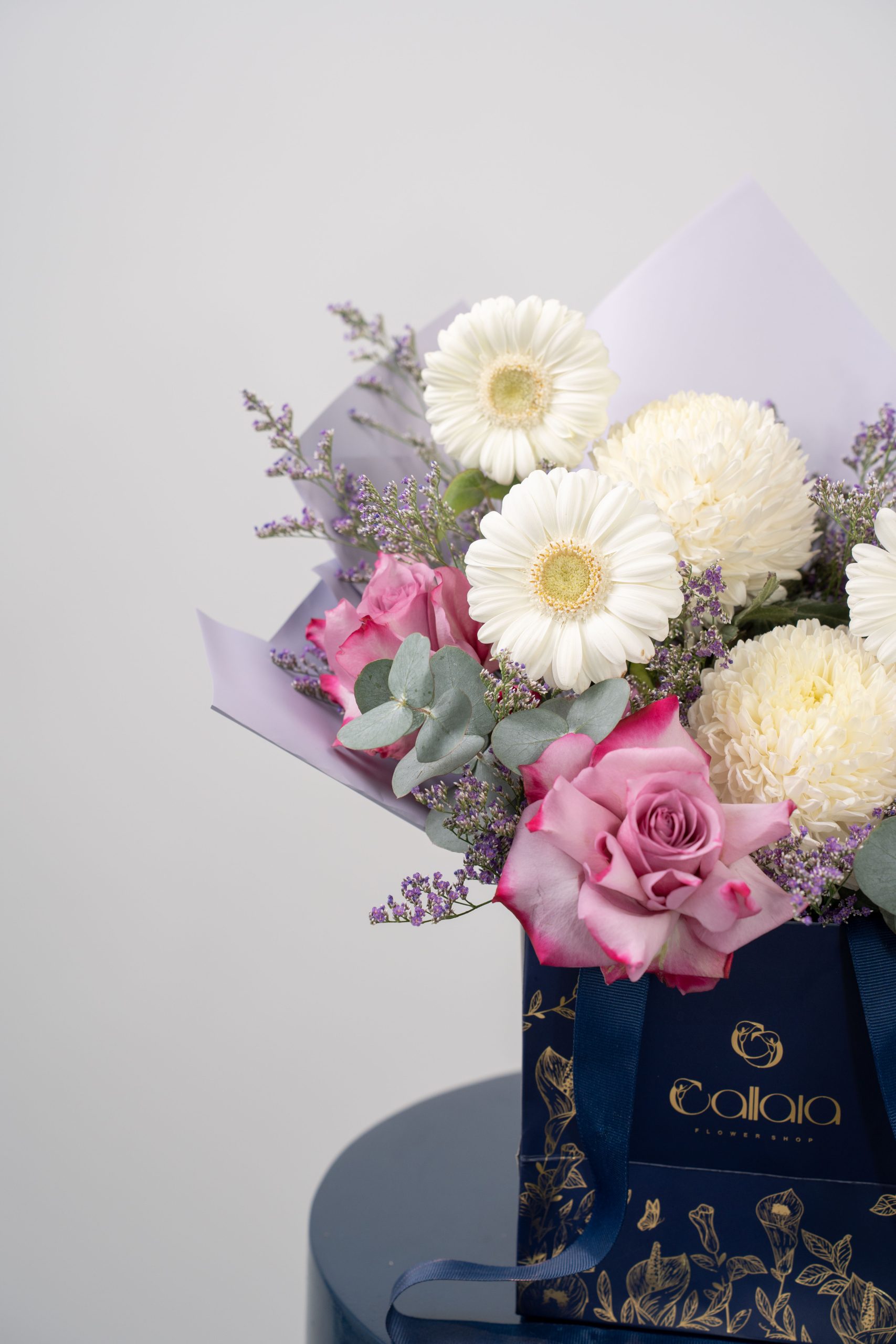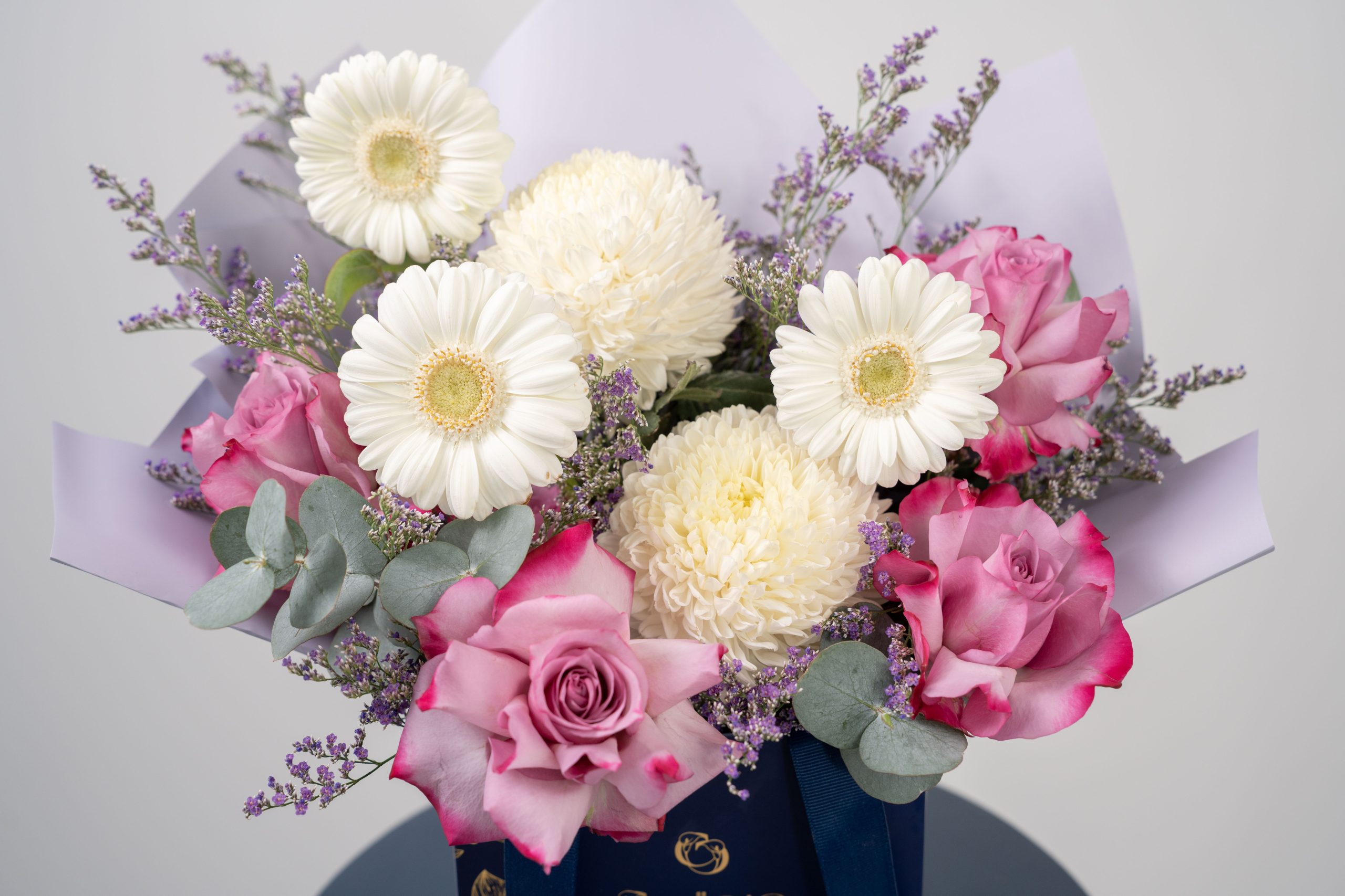 Accented with fresh eucalyptus and thoughtfully wrapped in soft pastel paper, Sweet Serenity is presented in a signature mini bag that adds a modern yet refined touch. The harmonious blend of pink, white, and lavender tones creates a look that feels light, romantic, and effortlessly elegant.