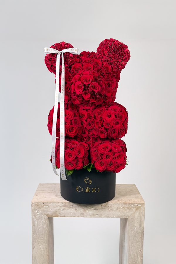 Hand-arranged with premium roses and presented in a sleek black hat box, The Love Bear symbolizes love, passion, and devotion. Its striking design makes it ideal for romantic occasions such as Valentine’s Day, anniversaries, proposals, birthdays, or simply to say “I love you” in an extraordinary way.