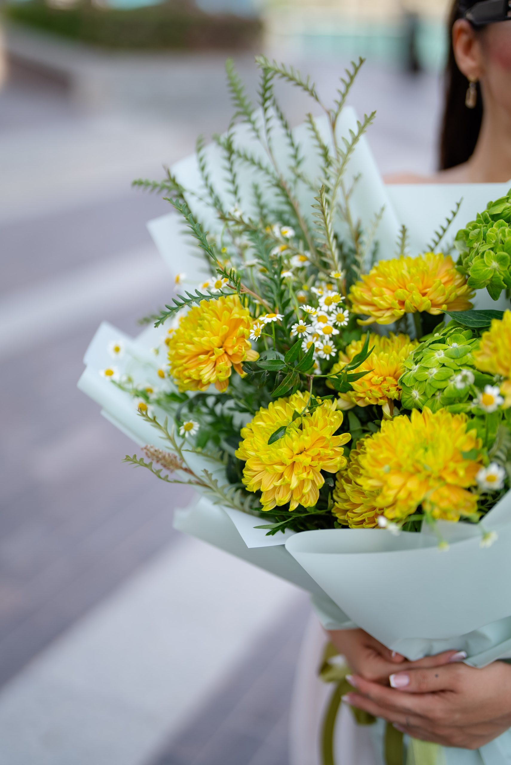 The harmonious blend of sunny tones and crisp greens creates a refreshing, uplifting aesthetic that feels both modern and timeless. Wrapped in soft pastel paper, Verdant Glow is perfect for birthdays, congratulations, thank-you gifts, celebrations, or brightening everyday moments with a touch of natural beauty.
